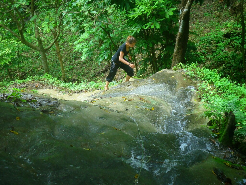 Najbolj zanimiv je slap Buatong, znan tudi pod vzdevkom Lepljivi slap. Lepljivi zato, ker lahko po njem hodiš in se povzpneš od vznožja vse do vrha. Jap, vem, prejšnji stavek ste še enkrat prebrali, ker niste verjeli, da ste pravilno razumeli. Moja reakcija je bila enaka. Zaradi posebnosti tukajšnjega apnenca, skale, ki jih spira voda niso gladke, temveč hrapave. Ne bom se spuščal v fizikalno ozadje pojava. Nekaj časa traja preden se navadiš, da lahko stopiš na skalo, ki izgleda spolzka kot žajfa. A oprijem je presenetljivo suveren in ni straha pred zdrsom. Paziti je potrenbno le kose preraščene z algami...