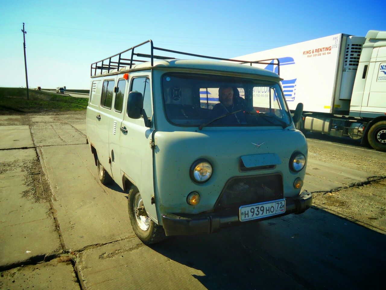 Po Uralu me je čakal nov izziv - prištopati do Sibirije. Spet 1700km, spet predvideni trije dnevi in spet so se stvari odvijale boljše, hitreje od pričakovanj. Tokrat nisem potoval s tovornjaki. Pravzaprav po dosedanjih izkušnjah lahko rečem, da je zelo majhna verjetnost, da bo kateri ustavil ob cesti. Ustavijo osebni avtomobili, ampak da dobiš prevoz s tovornjakom moraš ujeti kakšnega na počivališčih kjer se ustavljajo. Tako sem celotno pot do Novosibirska opravil na osebnih avtomobilih. Ne bom omenjal vsakega posebej, ker jih je bilo preveč, lahko pa izpostavim, da sem kakšnih 50km opravil z zelo zanimivim vozilom. Bilzu vasice Novaja Zaimka me je pobral Andrej z, v Rusiji zelo priljubjenim, UAZ-452. Neuradno jih imeujejo Buhanka, po naše, hlebček (slika spodaj). Zanimivo je to, da izgleda kakor da je preživel drugo svetovno vojno, a jih zaradi svoje uporabnosti še vedno izdelujejo. Notranjost je precej sodobnejša od zunanjega izgleda, kar nekako sploh ne gre skupaj :) Ampak kakorkoli, bila je zanimiva izkušnja ta vožnja.