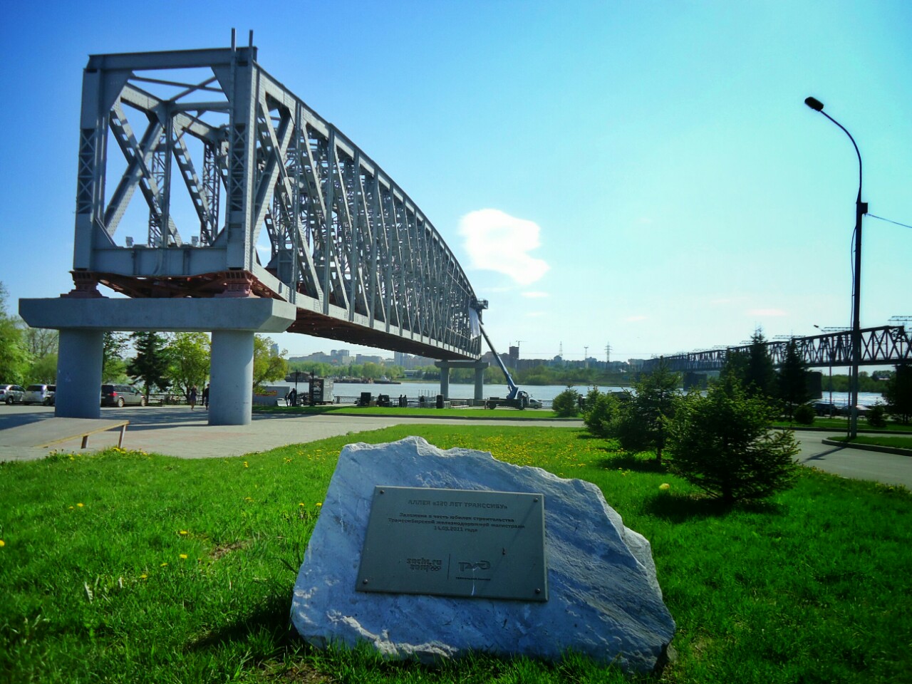 Tretji center mesta pa je nabrežje reke Ob. Tam je nekoč stal prvi železniški most. Ko je dotrajal so zgradili novega (spodnja slika, v ozadju na desni strani), del starega pa so ohranili kot spomenik.