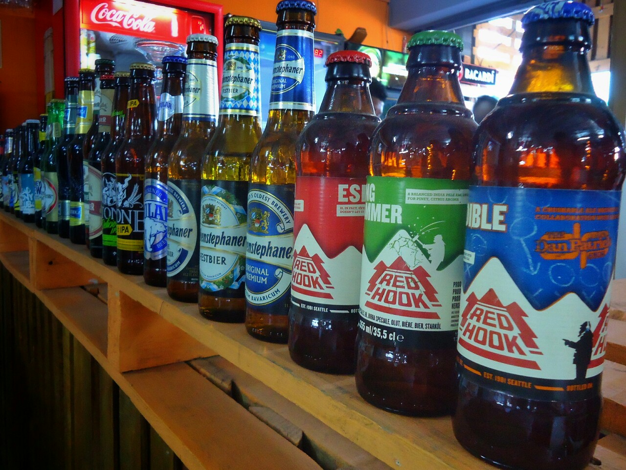 Dodajmo še dve vredni omembi. Prvo je pivo Red Hook. Nisem prepričan ali gre za drevesa ali vrhove (spodaj levo.) Drugo pa logotip na steni kavne plantaže v Gvatemali (desno.)