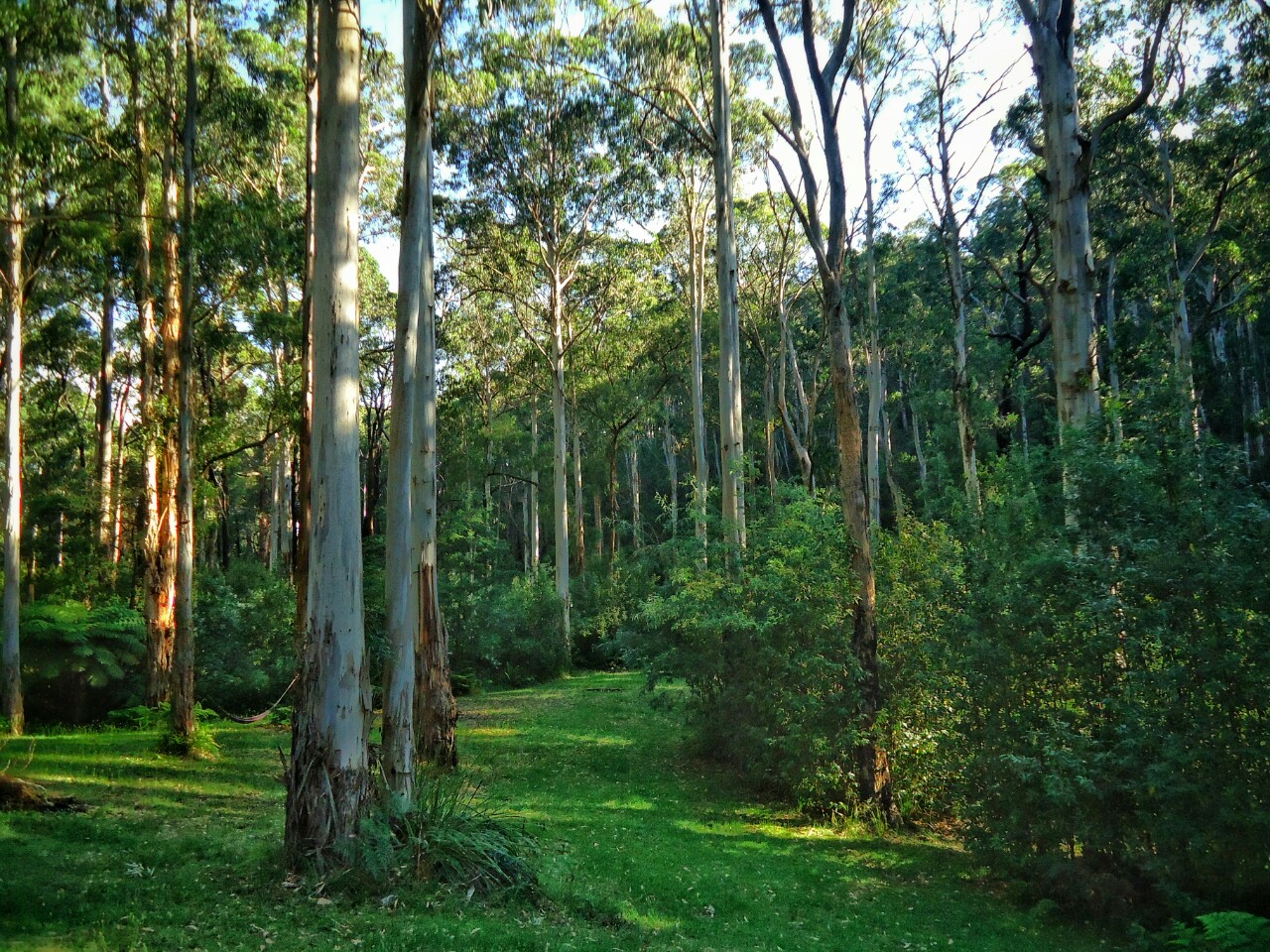 Hiša se nahaja sredi evkaliptusovega gozda, nedaleč od mesteca Healesville (slika spodaj levo), dobro uro vožnje iz Melbourna. Lokacija je raj za vse ljubitelje narave, kot sva sama. Gozd nudi odlične pohodne poti. Dva potoka pa kotičke za iskanje miru. A življenje sredi gozda skriva druge pasti. Pred sedmimi leti se je na tem območju vnel gozdni požar. Posledice so še vedno vidne (slika spodaj desno.) Hiša je preživela po zaslugi doma izdelanega sistema cevi in razpršilcev vode, razvejanega po celotni strehi. Cenovno ugodna in uporabna rešitev.