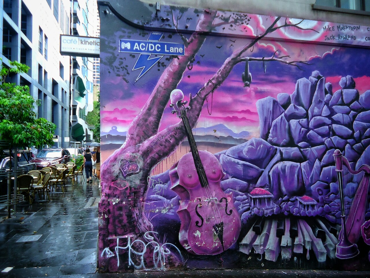 Ena takšnih je še posebej zanimiva, predvsem zaradi imena - AC/DC Lane :) Seveda niso popisane vse ulice. Od daleč mesto daje sliko prepletanja stare viktorijanske in sodobne arhitekture.